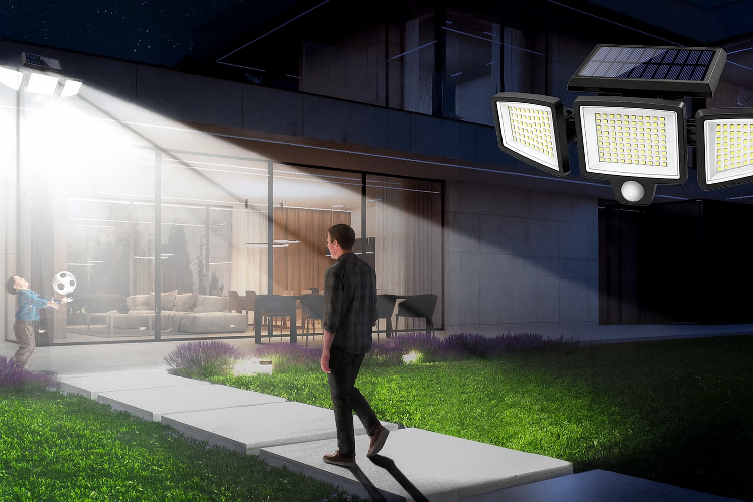 Equipado con 210 luces LED ultrabrillantes, ofrece hasta 2500 lúmenes de intensidad, perfecta para iluminar patios, garajes, entradas o jardines sin gastar electricidad.